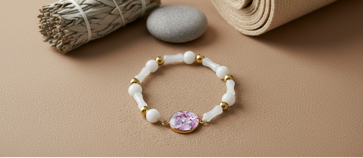 Box Breathing Techniques for stress relief| Bracelet | Natural Stone | White